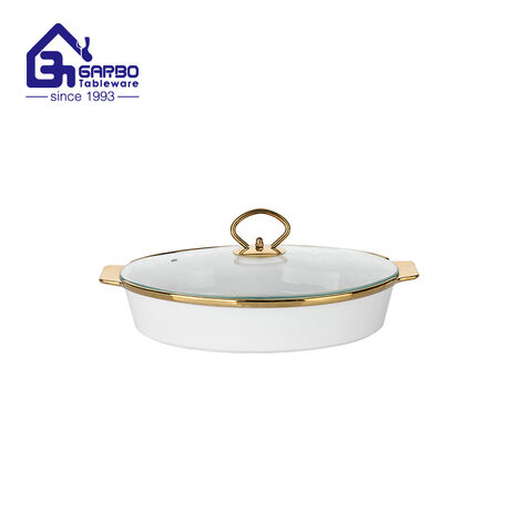 The oval-shaped ceramic chafing dish is made from reinforced porcelain, which is built to last and withstand frequent use.