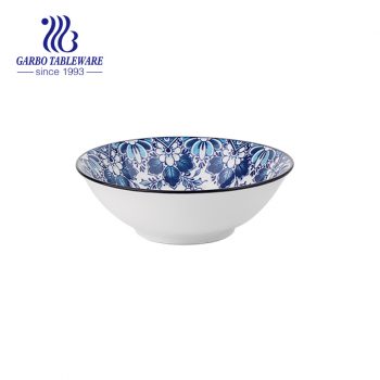 Wholesale round shape big size soup bowl with flower decal for home usage