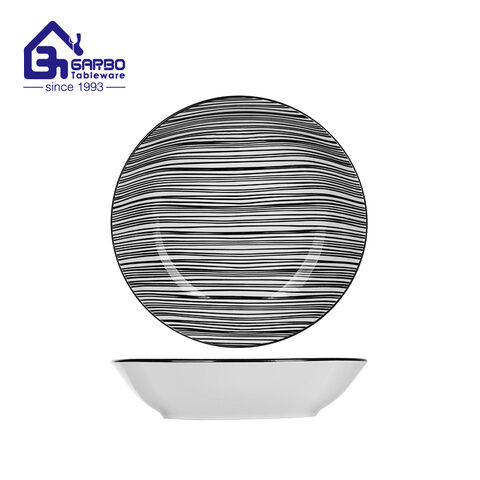 The modern black waved design pattern on the ceramic dessert plate design is lead free thus it is safe and healthy for human's body.