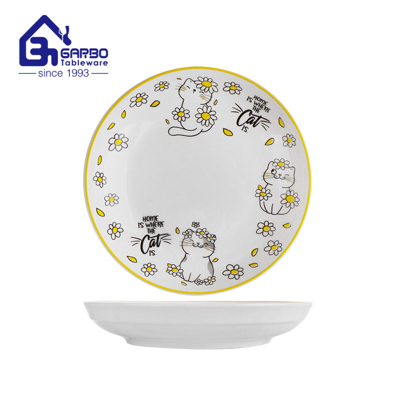 Made In China porcelain plate 8 inch ceramic dish with cute cate design