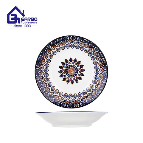 This ceramic deep plate catches the eye with its unique floral pattern