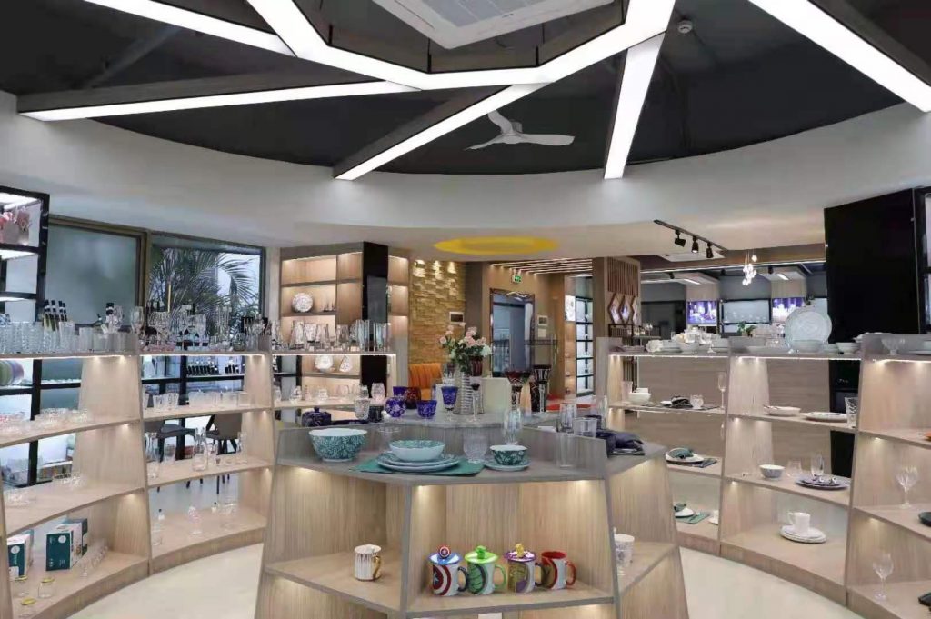 The place of livestream is exact the newest showroom where Garbo finished the decoration in end of 2020. This new showroom with a newly and high end looking, it is a great place to offer more inspiration for our customers. All the decoration styles are come from Garbo design team. Yes, our designers are not only drawing, printing, molding for glassware but also for building. There are all stylish, elegant glass decanter, wine glass, cutlery, porcelain dinnerware for high end markets. And, it is the first time to show to our customers online.