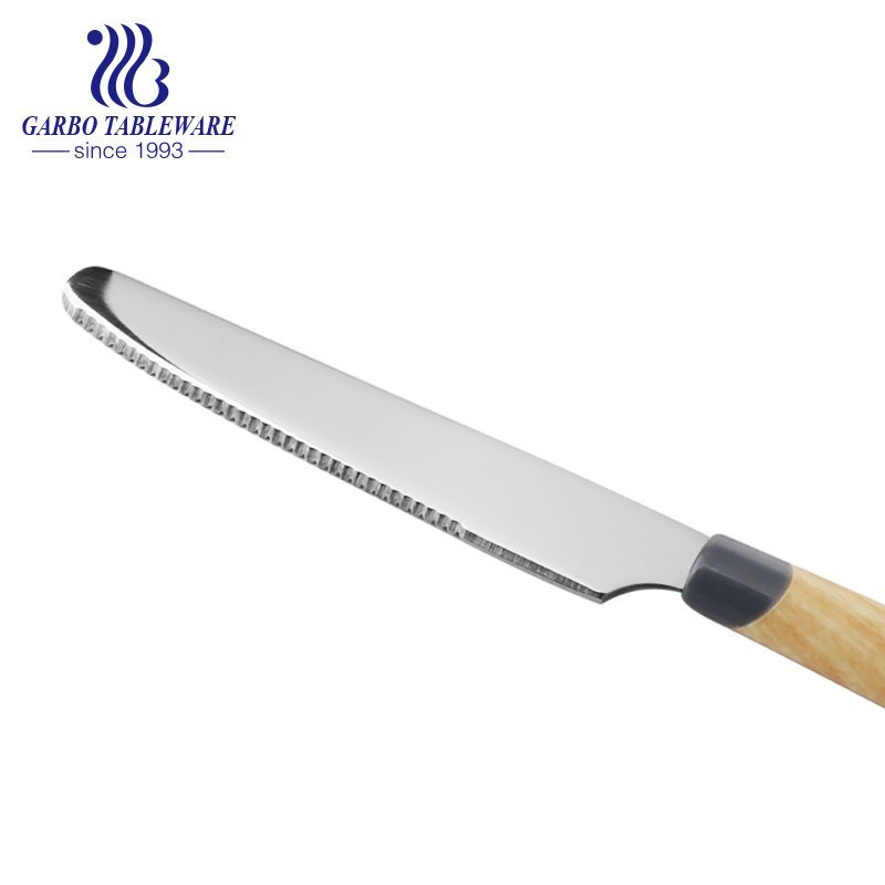 ●In fact, we use plastic handles and print wood grain patterns on the handles. The plastic material makes this 24pcs cutlery set lightweight and durable. The front part is made of stainless steel, and the handle part is made of plastic. The collision of two different materials makes this set of products more novel and interesting.