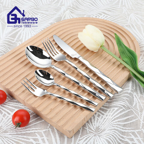 This silver stainless steel flatware set features a high mirror polish and the quality is guaranteed. The clients who have purchased this cutlery set from us have consistently reported excellent quality for the goods.