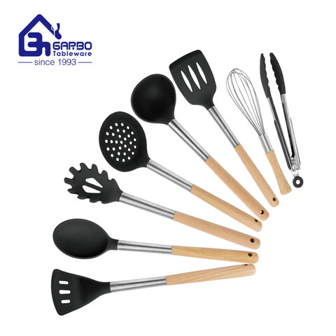 Factory direct kitchen tools set for silicone&bamboo slotted turner