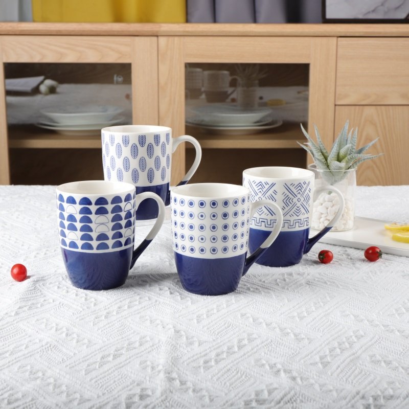 This drinking mug is also made of new Bone China, and it’s decorated with blue color glazed, and some beautiful pattern also. This makes the mugs vivid and charming. The drinking mug is very suitable for coffee, tea, milk, juice serving.